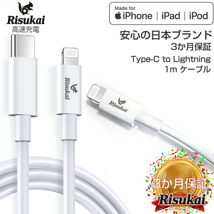 \24h迄!/1188円【クーポンで】iPhone 充電ケーブル リスカイ ライトニングケーブル Type-C Lightning 充電器 USB 日本ブランド 純正 apple認証品 MFi認証 アップル ケーブル 急速充電 USB-C 1m 純正品質 13 13mini pro max 12 12mini SE2 11 X XS XR 8 7 6 Plus iPad 断線