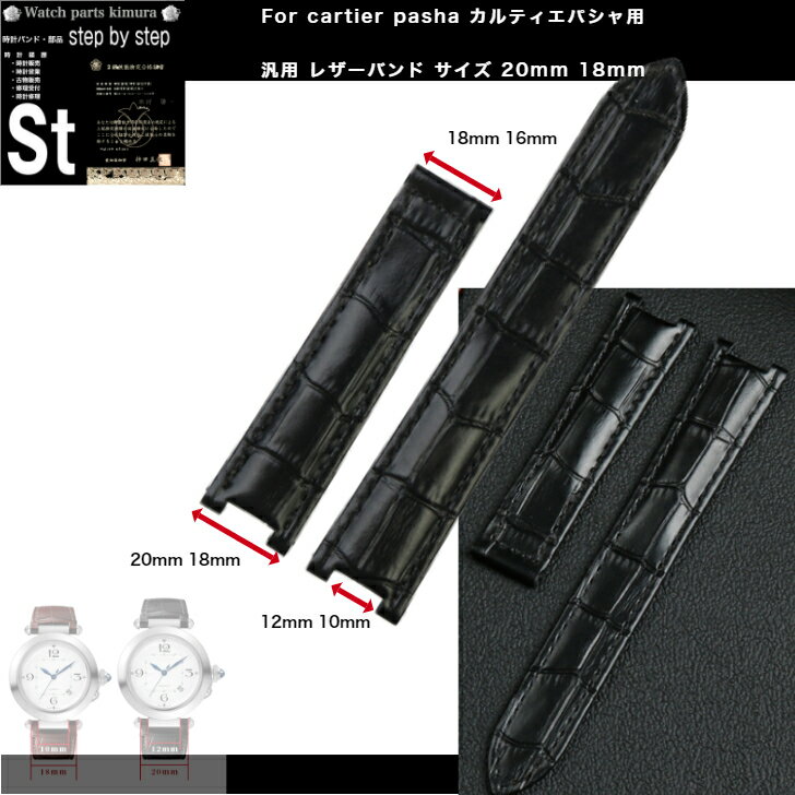 【時計修理技能士 監修】時計 腕時計 時計ベルト 時計バンド 本革 ブラック 18mm 20mm 汎用バンド Cartier カルティエ PASHA パシャ メンズ レザー 汎用ベルト W310 互換用バンド