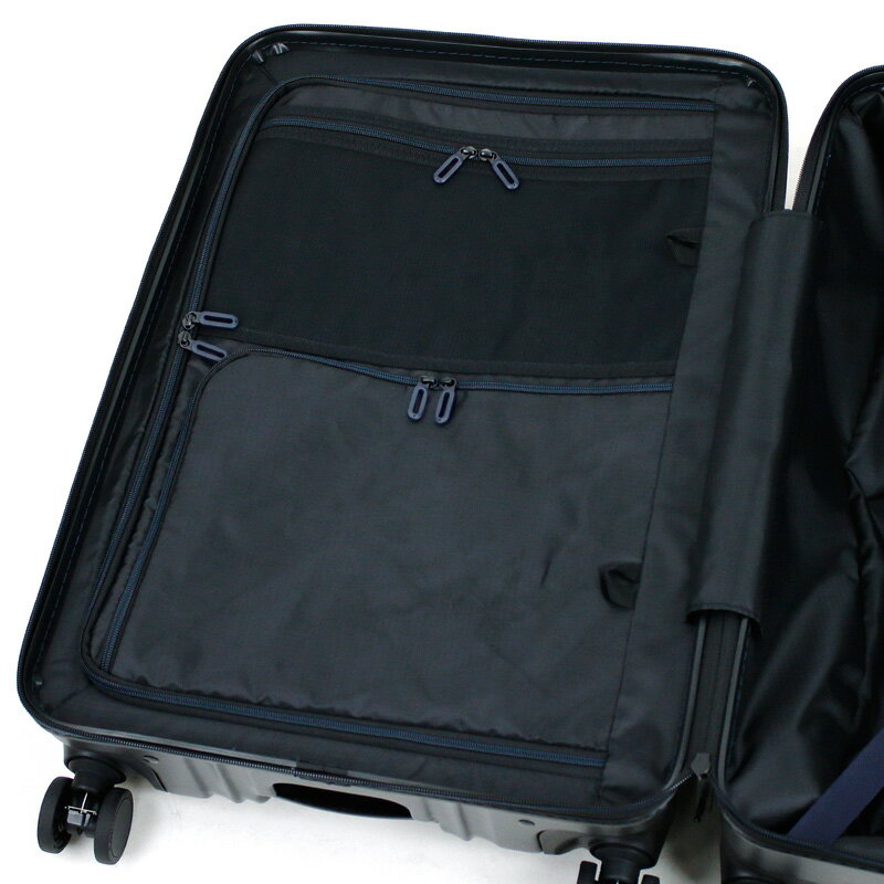 ◇フロントルームにメッシュファスナーポケット(S)×2・メッシュファスナーポケット(M)×1・ファスナー仕切り収納×1[メッシュファスナーポケット(L)×1]。