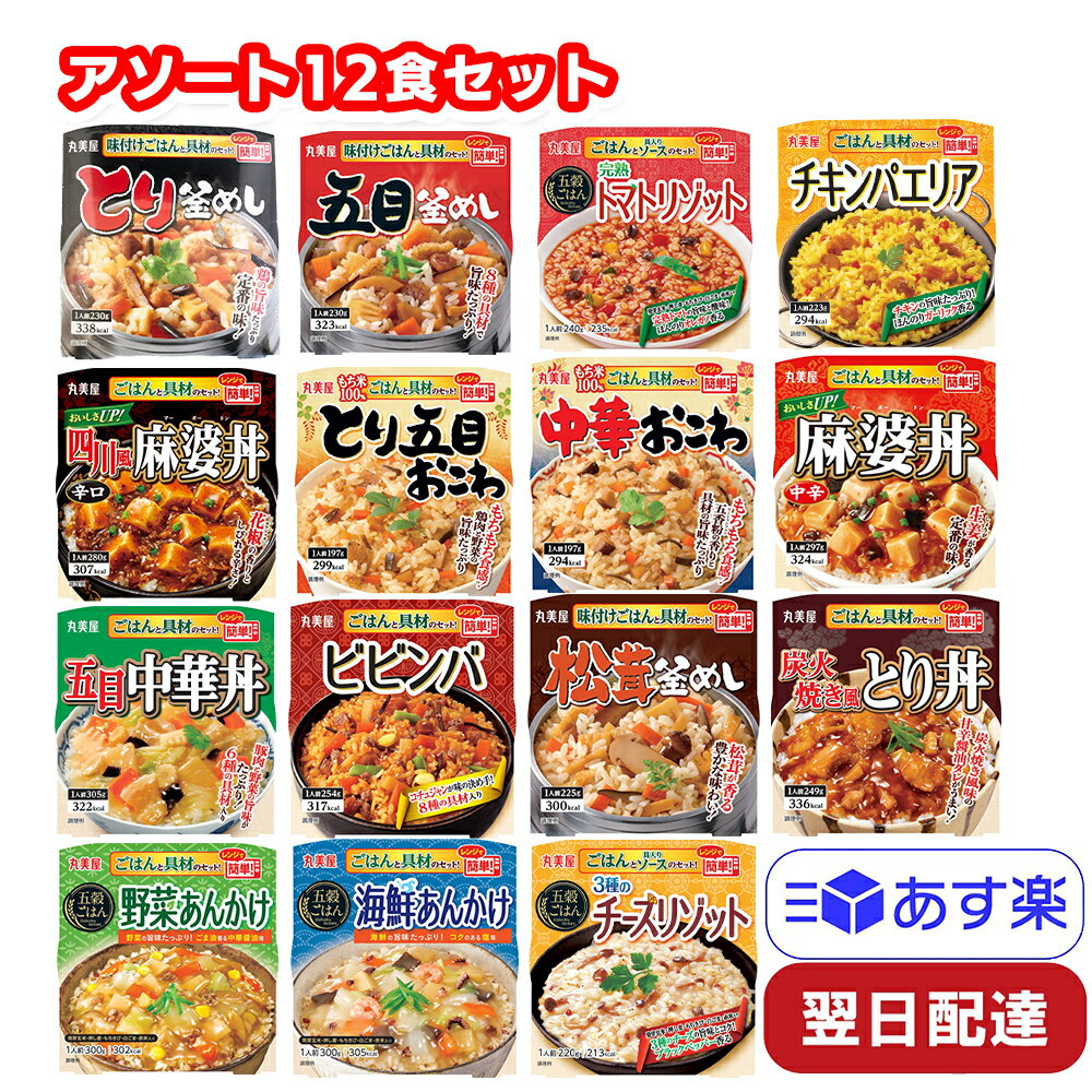 丸美屋 ごはん付き シリーズ アソート 12食セット とり釜めし 五目釜めし トマトリゾット 四川風麻婆豆腐丼 麻婆丼 五目中華丼 ビビンバ 松茸釜めし 炭火焼鳥丼 野菜あんかけ 海鮮あんかけ チーズリゾット 即食 時短食 ごはんと具材がセット 簡単 美味しい