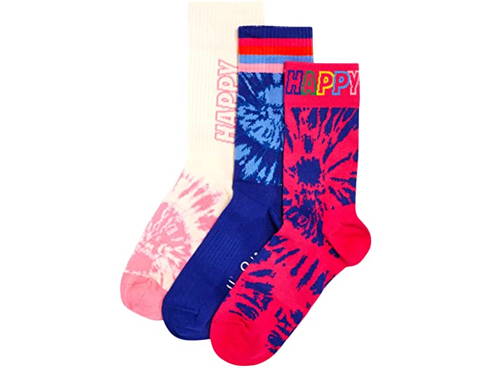 (取寄) ハッピーソックス レディース タイダイ シン クルー ギフト セット 3パック Happy Socks women Tie-Dye Thin Crew Gift Set 3-Pack Khaki
