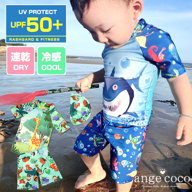 ≪楽天スーパーSALE15%OFFクーポン≫ 一部短納期 水泳 パンツ キッズ水着 上下 帽子付き ラッシュガード 動物 半袖 男の子 ベビー 赤ちゃん 水着 キッズ 子供 日焼け 対策 紫外線 小学生 保育園 幼稚園 プール 男子 男の子