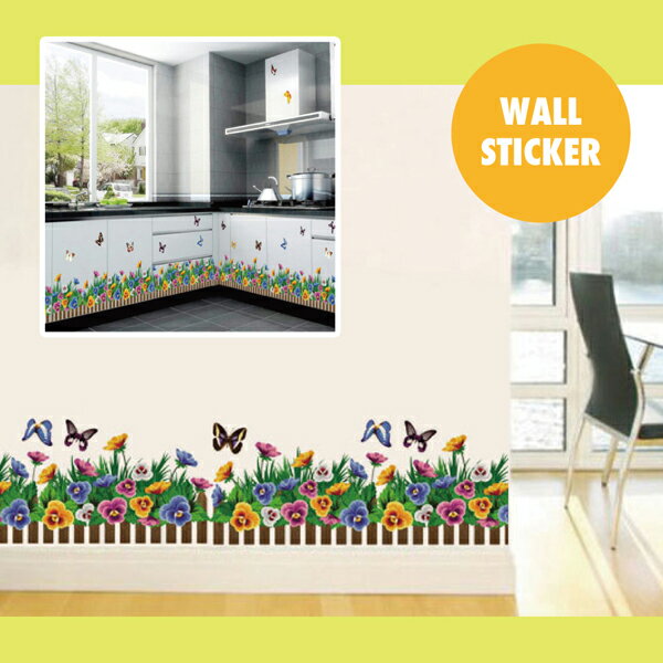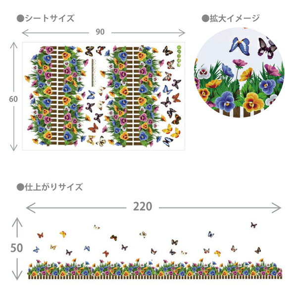 ウォールステッカー ビオラ パンジー 花柵 蝶 フラワーフェンス 北欧 おしゃれ オシャレ トイレ ガーデニング シール インテリア 壁紙 飾り 窓 英字