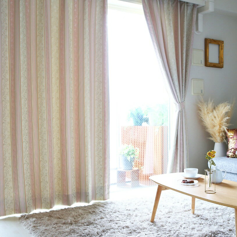 【¥9,200〜】 カーテン おしゃれ 遮光3級相当 遮熱 保温 洗濯可能 オーダー 丈50cm-285cm 幅30cm-300cm ポリエステル タッセル付 フック付 ピンク/グリーン 〜シーナ 〜